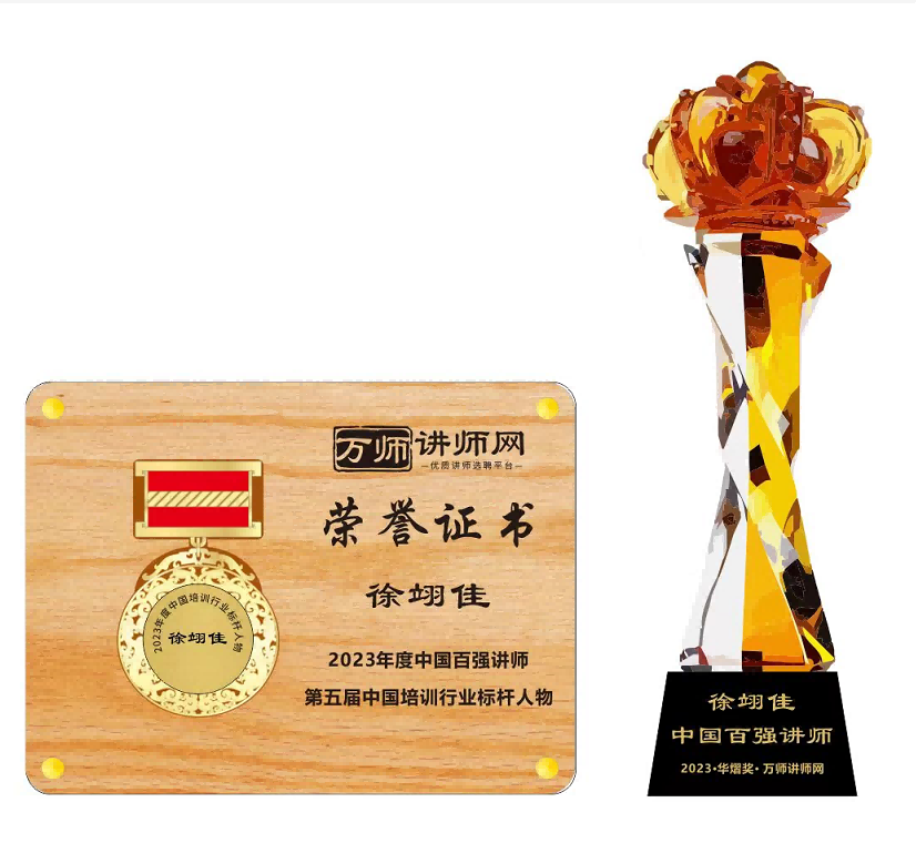 恭喜徐翊佳老師榮獲萬師講師網2023年度中國百強講師 暨第五屆中國培訓行業標桿人物