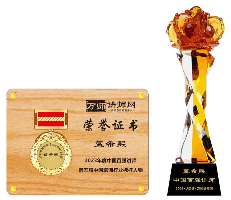 恭喜藍希熙老師榮獲萬師講師網2023年度中國百強講師 暨第五屆中國培訓行業標桿人物