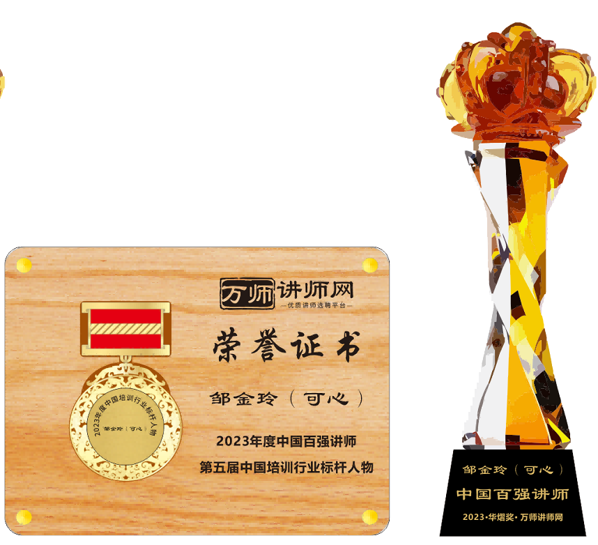 恭喜鄒金玲(可心)獲萬(wàn)師講師網(wǎng)2023年度中國(guó)百?gòu)?qiáng)講師 暨第五屆中國(guó)培訓(xùn)行業(yè)標(biāo)桿人物