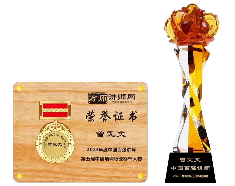 恭喜曾憲文榮獲萬師講師網2023年度中國百強講師 暨第五屆中國培訓行業標桿人物